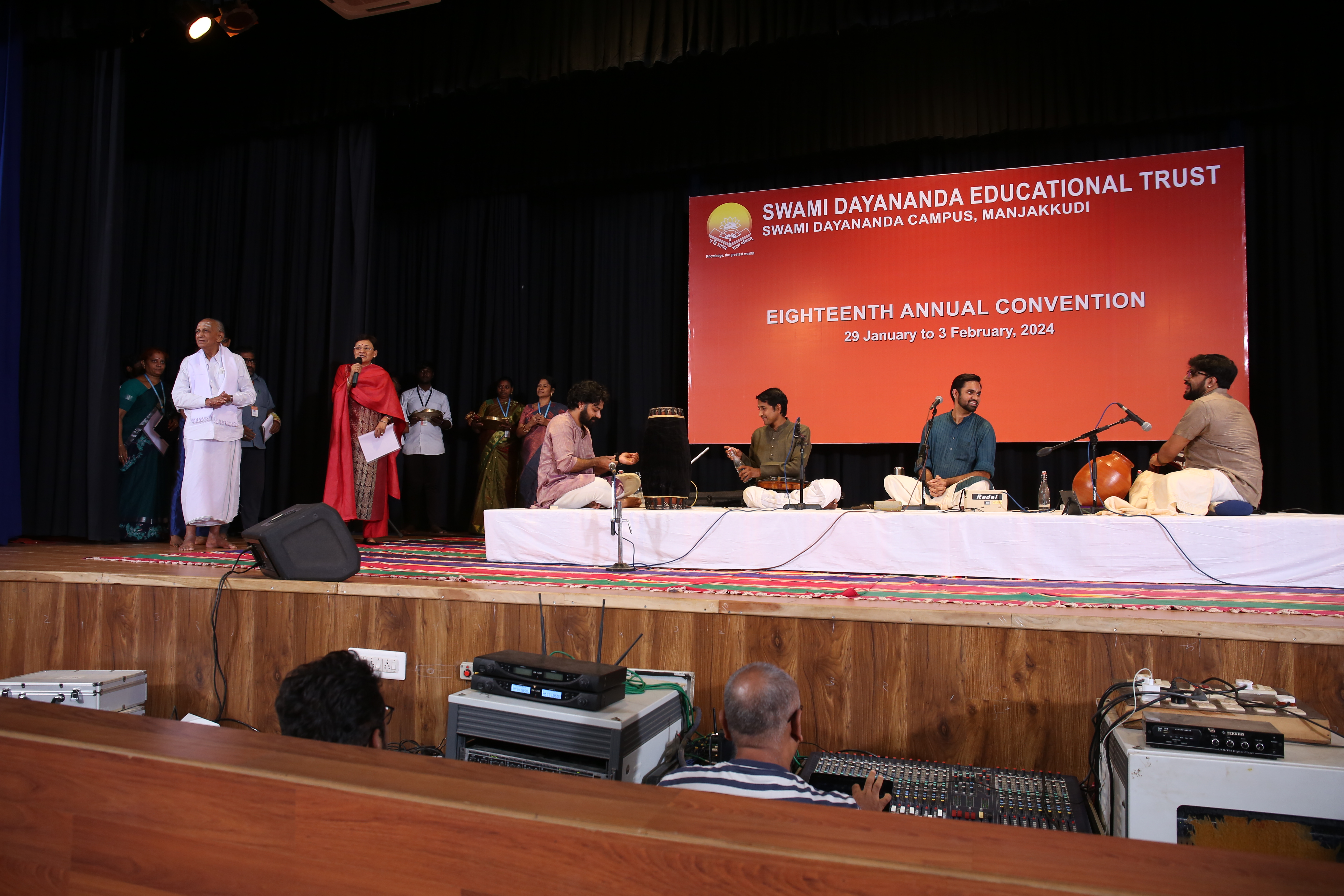 Pujya Swamiji’s sensitivity to the needs of Indian society has made him appreciate and empathise with problems faced in rural areas in India, such as lack of good education and health care. The Swami Dayananda College of Arts & Science, Manjakkudi, Tamil Nadu was started in 2001 with an aim of providing students from rural India (especially girl students) with quality education in close vicinity to their place of residence.